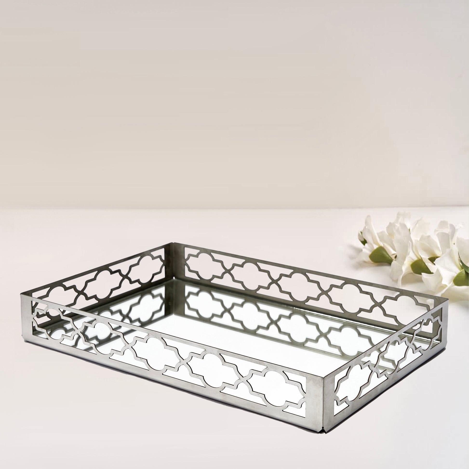 Silver rectangular mirror tray